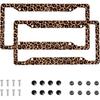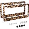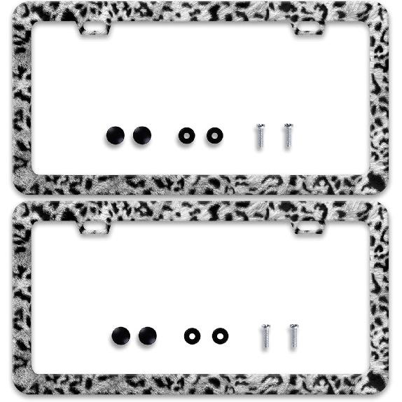 2 Pcs Grey Black Leopard Print License Plate Frame Cheetah License Plate Frames Personalise Stainless Steel Funny Design Compatible with Standard
