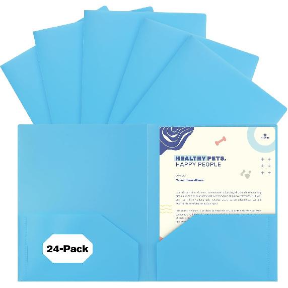 6-Pack Plastic Folders with Pockets,2-Pocket Pastel Folders Holds US Letter Size Paper for School/Office/Home, Pink