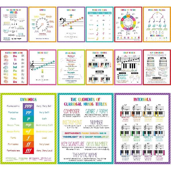 Ceiba Tree 15Pcs Music Theory Posters 11x14 inch Musical Bulletin Board Decorations Basic Notes Scales Chords Reference Poster for Teachers