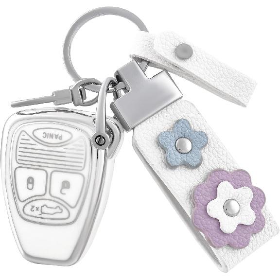 for Jeep Key Fob Cover with Leather Keychain, Soft TPU Key Case Protection Fit for Jeep Wrangler Compass Dodge Ram Durango Caliber Dakota Nitro