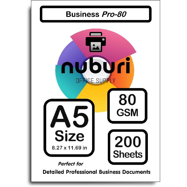 Nuburi - A5 Size Premium Printer Paper - Blank Sheets - No Holes - Smooth Bright White - 80 gsm / 21 lb. (200 Sheets) — купить товар онлайн с бесплатной доставкой по всему миру!