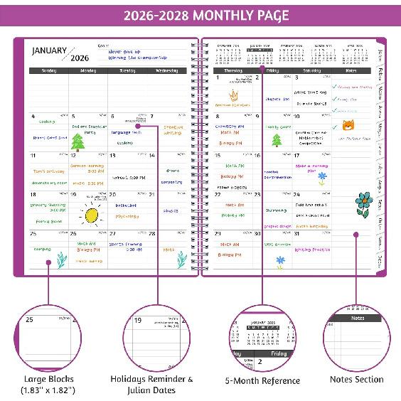 Monthly Planner 2026-2028, 36 Months Calendar Planner 2026-2028 from Jan 2026 – Dec 2028, 8.5'' x 11'' with Ruled Spread, Flexible Cover, Spiral