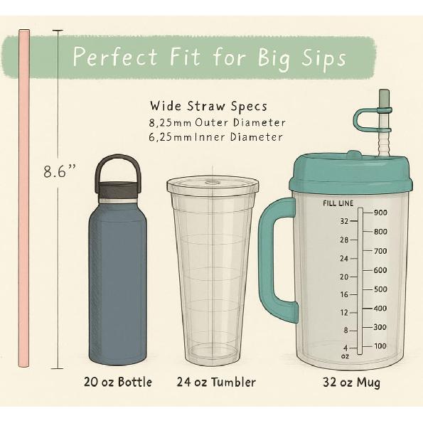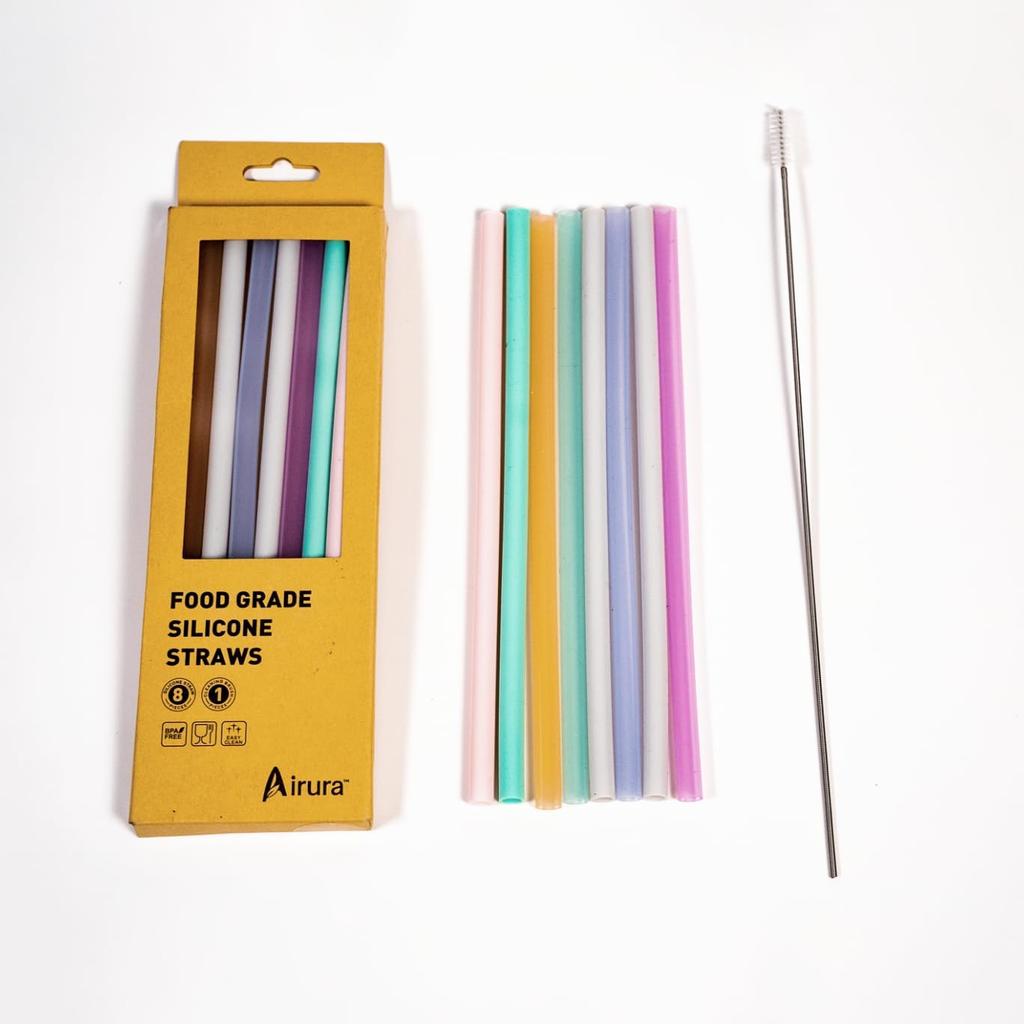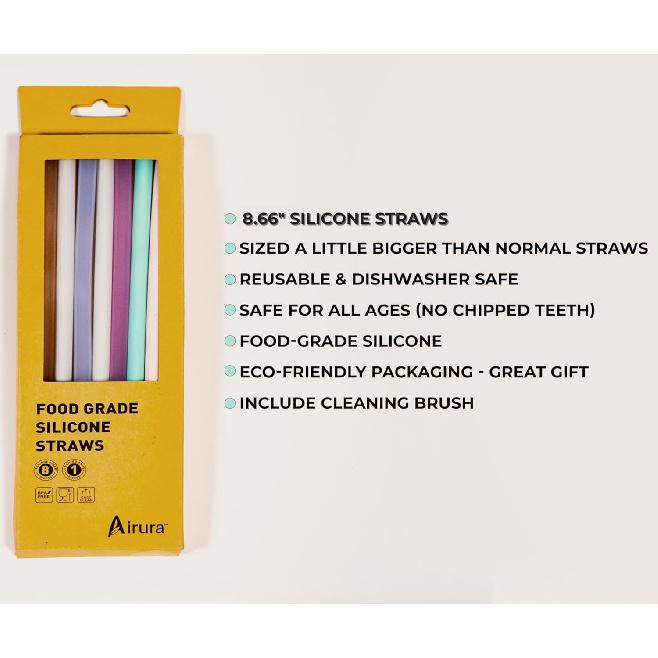8.6-inch (220mm) Reble Silicone Straws – Set of 8 Soft Pastel Straws + Cleaning Brush + Kraft box – BPA-Free, Dishwasher Safe – Great for