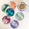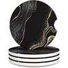 Ceramic Cup Holders Car Coasters for Women/Men,Cool Absorbent Drink Cup Car Holder Coasters with A Finger Notch 2.56" Pack of 2,Blue Marble Gold
