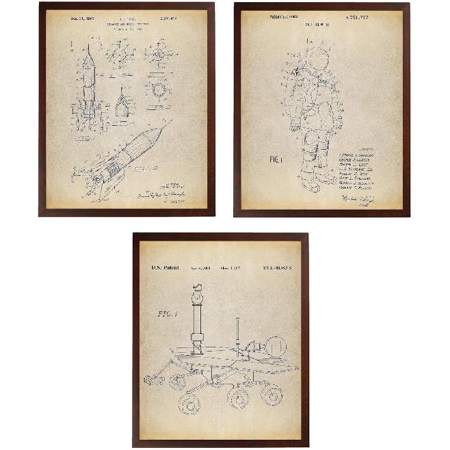 Outer Space Exploration Decor Patent Poster Art Prints Series Set 3 Space Suite Astronaut Rocket Mars Rover TNP13