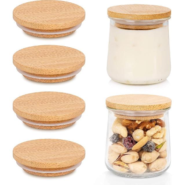 Oui Yogurt Jar Lids, Oui Yogurt Bamboo Jar Lids Set, Wooden Lids for Oui Yogurt Jars, Oui Yogurt Jars Lids with Silicone Sealing Rings, Cookie Glass