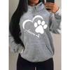Любовь И Лапка Маленького Кота Креативный Принт Женское Худи Мода Осень Толстовка Карман Худи Спортивный Стиль Удобный