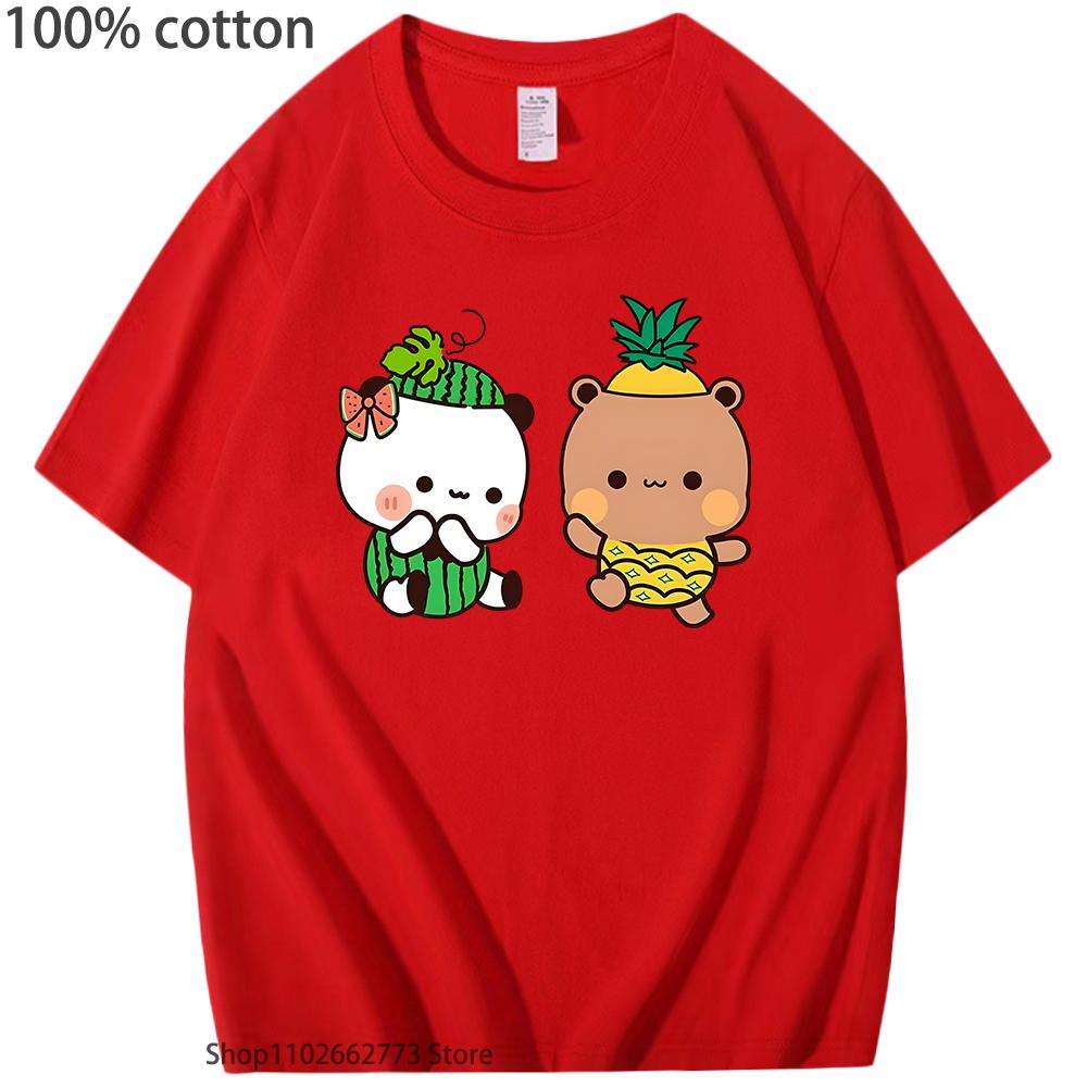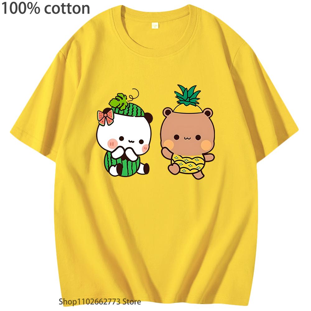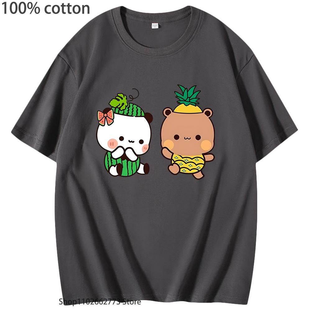 Kawaii Graphic T-Shirts Couple Fruits Couple Dudu Pineapple and Bubu Watermelon Shirt Cute Panda Bear