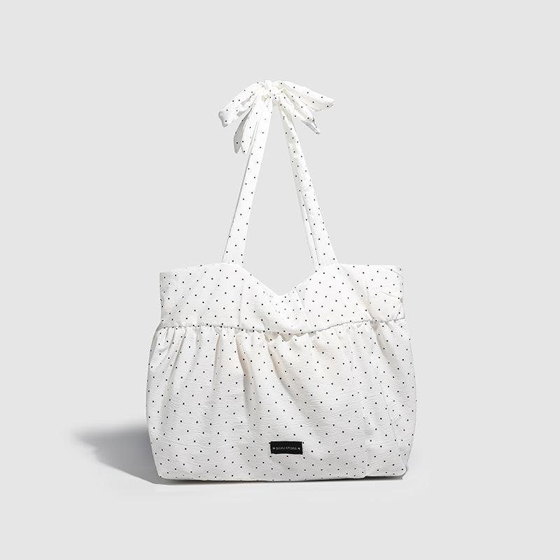 Корейская холщовая сумка в горошек женская 2025 новый большая вместимость для поездок на работу на плечо сумка-тоут плиссированная девчачье сердце облачная сумка