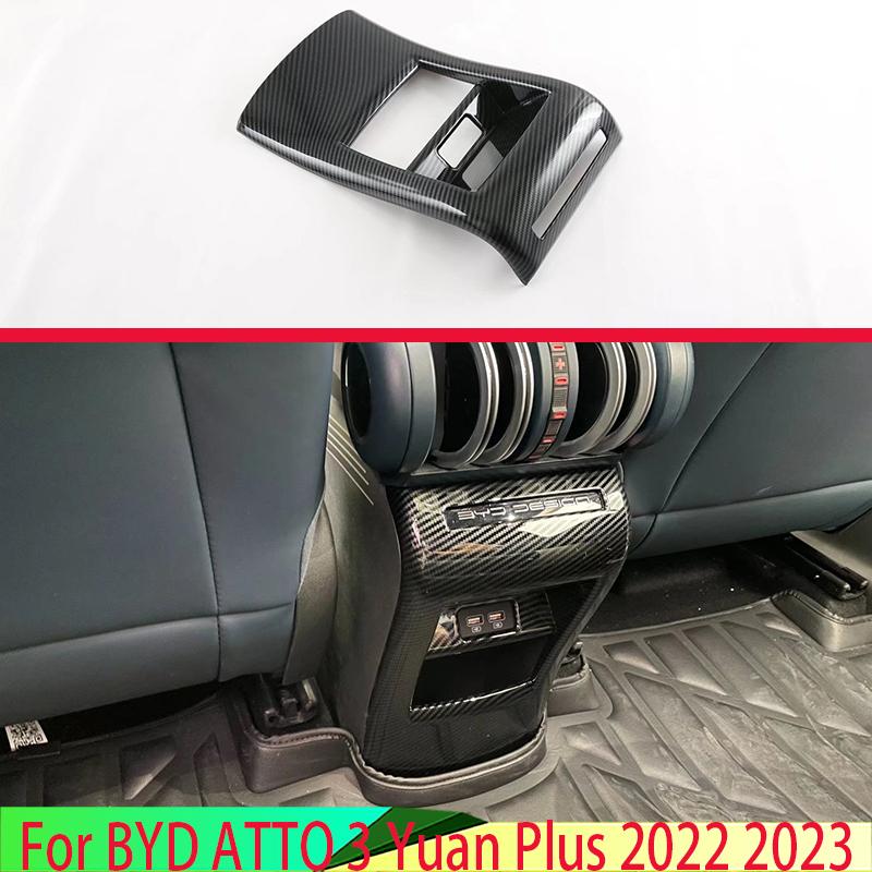 For BYD ATTO 3 Yuan Plus Car Accessories Carbon Fiber Style Plated Armrest Box Rear Air Vent Frame Trim Cover