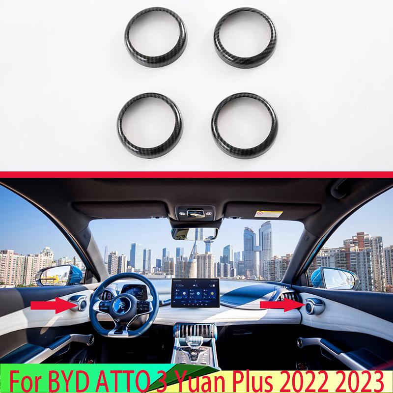 For BYD ATTO 3 Yuan Plus Car Accessories Carbon Fiber Style Four-Door Tweeter Ring Hood Trimmed With Sequ