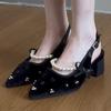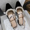Elegant String Bead Crystal Embellished Black Heels Women Sexy Pointed Toe Flannel Back Strap Buckle Sandal Luxury Designer Shoe