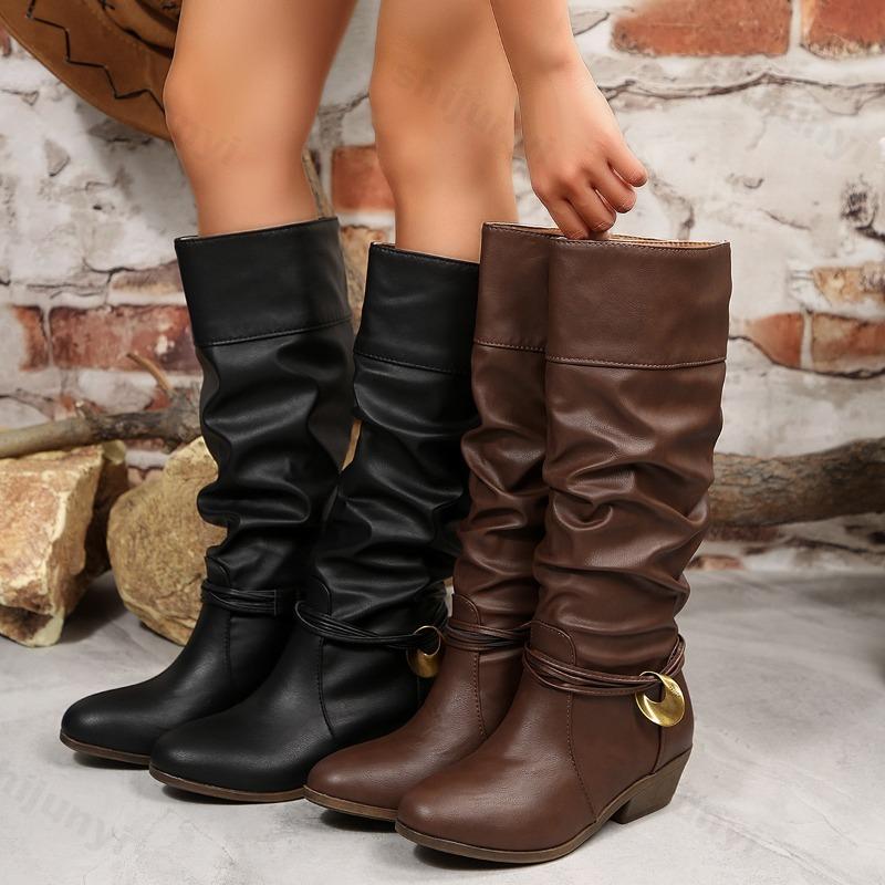 Женские Винтажные Коричневые Длинные Западные Ковбойские Сапоги 2026 Зимний Комфорт Толстый Каблук До Колена Черные Сапоги Металлическая Пряжка Большой Размер 36-43 — купить товар онлайн с бесплатной доставкой по всему миру!