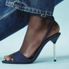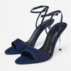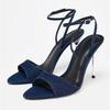 Denim Blue Thin Heeled Sandals Women Sexy Peep Toe Ankle Strap Buckle High Heels Summer Elegant Pumps Comfort Casual Sandalias