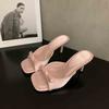 Дизайнерское Стильное Вечернее Платье Женские Тапочки Обувь Мода Бант Летние Открытый Носок Высокий Каблук Женские Шлепанцы Обувь