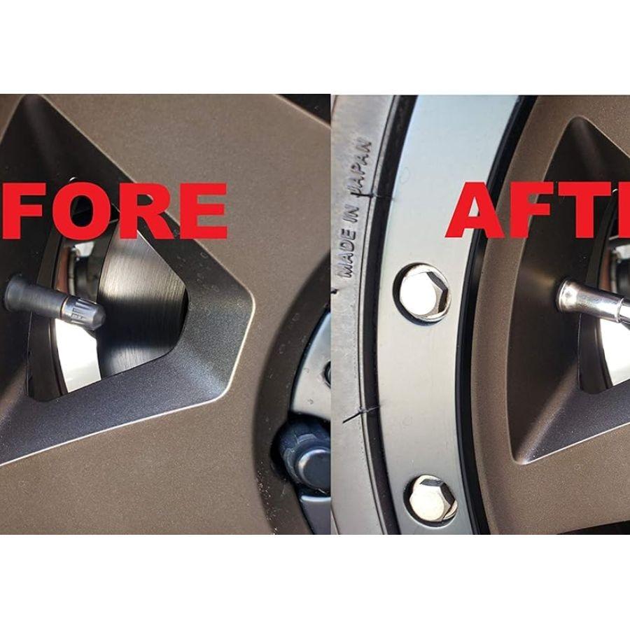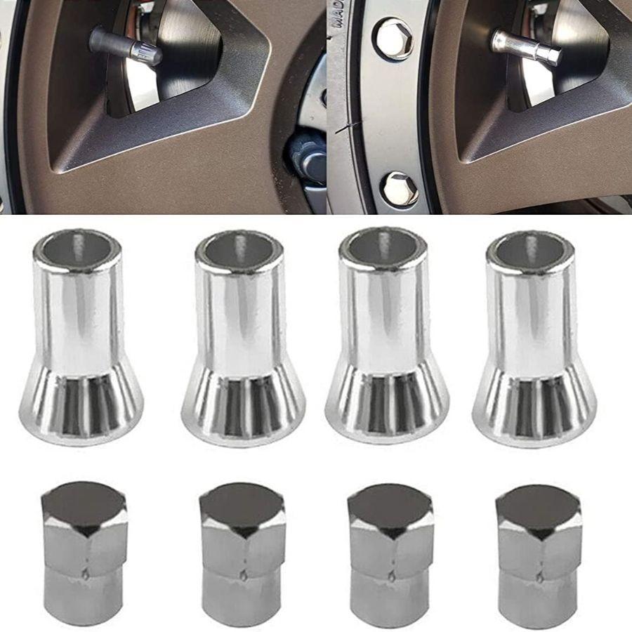 Universal TPMS Chrome Valve Stem Sleeve Covers and Cap Dress Up Kit- Set of