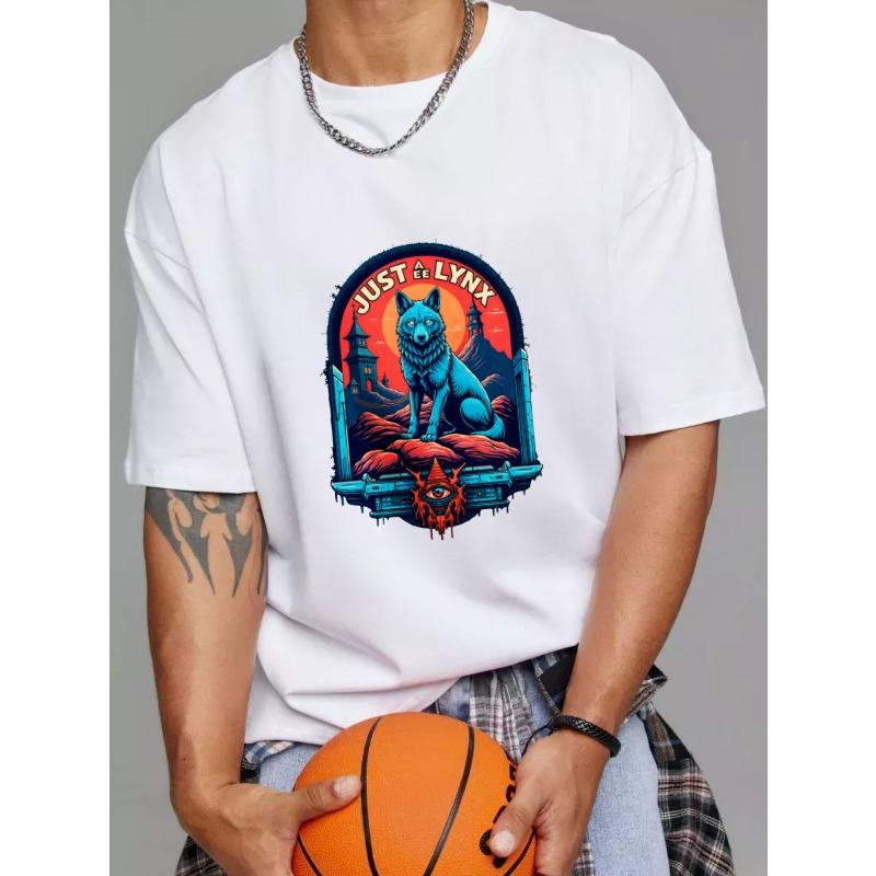 Белая футболка с графическим принтом Just The Lynx, с синей рысью и символом глаза, для повседневной носки — купить товар онлайн с бесплатной доставкой по всему миру!