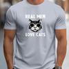 Мужская черная футболка с принтом кота и солнцезащитных очков. Графика "Настоящие мужчины любят кошек" для повседневной носки.