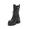 Женские ботильоны до середины икры Высококачественная кожа Повседневные ботинки Ботинки на платформе для увеличения роста Ботинки на шнуровке с толстым каблуком Botas Mujer