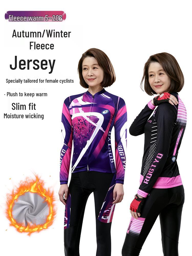 Mid-Aged Women's Thick Fleece Cycling Suit - Slim-Fit Mountain & Road Bike Gear
