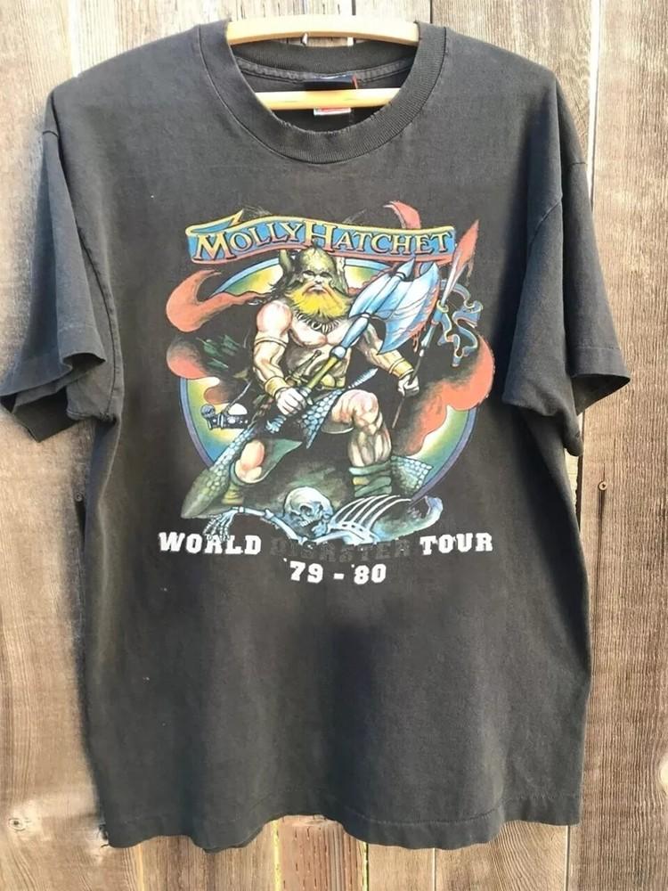 70s Molly Hatchet World Tour Disaster Charcoal Unisex Tshirt Men Women S-5XL Unisex T-Shirt
