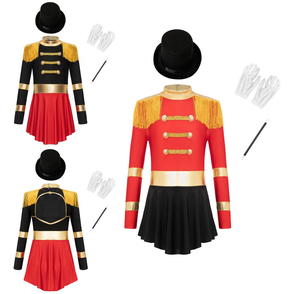 Girls Magician Jumpsuit Costume Long Sleeve Keyhole Back Fringe Epaulet Design Top Hat Gloves Wand Set — купить товар онлайн с бесплатной доставкой по всему миру!