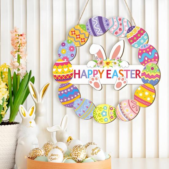 Деревянный пасхальный венок на дверь для входной двери Счастливой Пасхи Кролик Яйца Вывеска для крыльца для весеннего окна Настенный декор
