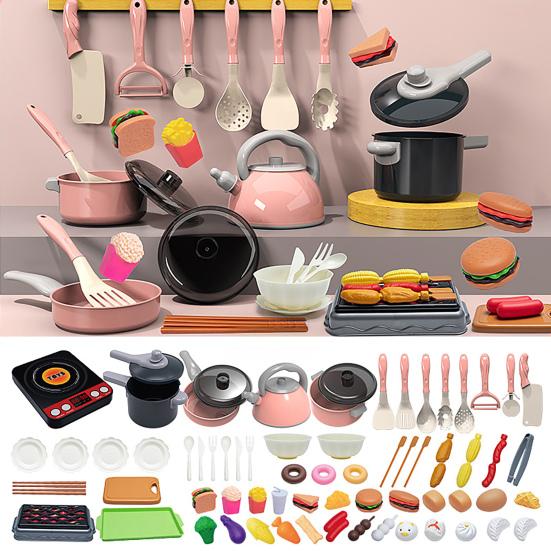 Прочные и безопасные материалы: Этот кухонный игровой набор, изготовленный из высококачественного АБС-пластика, включает 28/61/71 предмет кухонной утвари, столовых приборов и продуктов питания, таких как кастрюли, сковороды, фрукты, овощи и имитацию индукционной плиты.. Прочная конструкция обеспечивает безопасное исследование кулинарных приключений без износа или повреждений, предоставляя надежный и безопасный для детей игровой опыт.