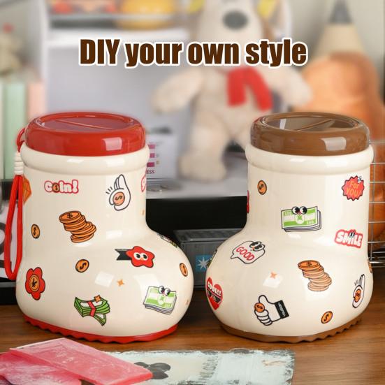 Мультяшная копилка-ботинок с наклейками DIY, контейнер для монет и наличных, для малышей, мальчиков, девочек, копилка для сбережений, домашний офис, настольное украшение