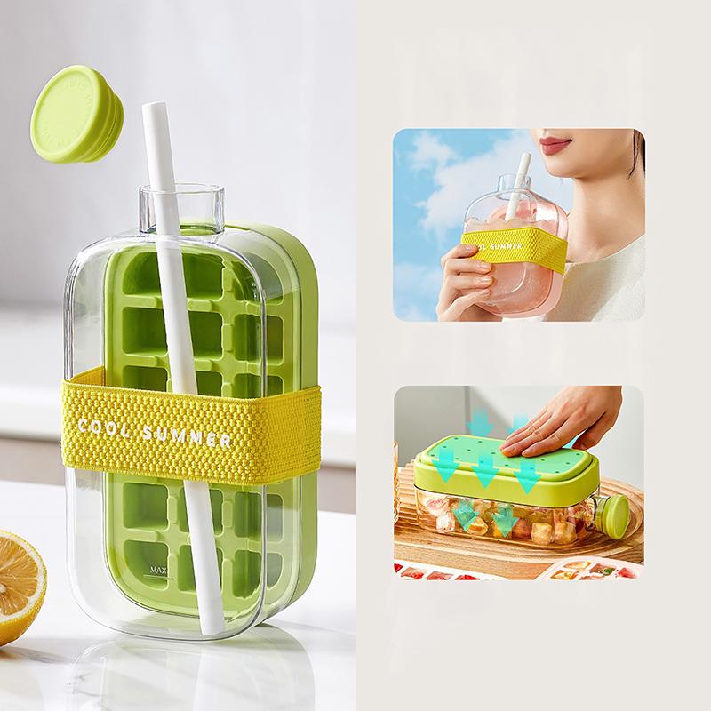 Летний поднос для кубиков льда с соломинкой 2 в 1 поднос для льда и бутылка для воды для льдогенератора без касания силиконовый кубик льда портативный чайник