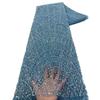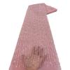 1 ярд Африканская роскошная кружевная ткань с бусинами и тюлем Нигерийская ручная работа Плотная кружевная ткань с пайетками Для DIY Свадебные Вечеринки Платья