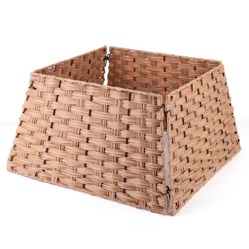 Christmas Tree Collar Foldable Xmas Tree Faux Rattan Cover Woven Rattan Tree Base Cover for Christmas Tree Ring Skirt Basket