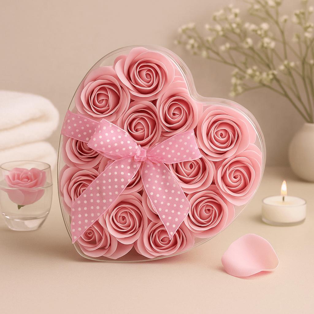 Soap Roses Heart Box Pink 24-Pack
