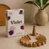 The cones are solid and smooth to the touch—light brown, matte, and neatly shaped. A small round metal holder in a warm brass tone steadies each burn. On the air, violet feels petal-soft and powdery with a green leaf nuance, lingering lightly for about 20 minutes per cone—just right for a calm corner, reading time, or a welcoming entry. 🪔