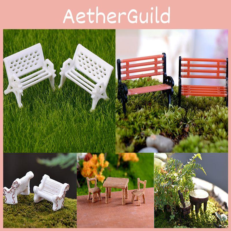 Набор миниатюрных садовых скамеек Прочная смола Белый стул и коричневый стол Декор микроландшафта — купить товар онлайн с бесплатной доставкой по всему миру!