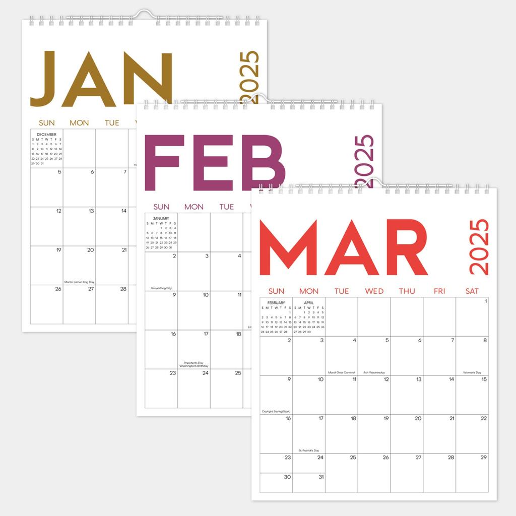 Calendar 2025, Color Calendar 12 Months, Double Coil Spiral Binding Monthly Planning Calendar