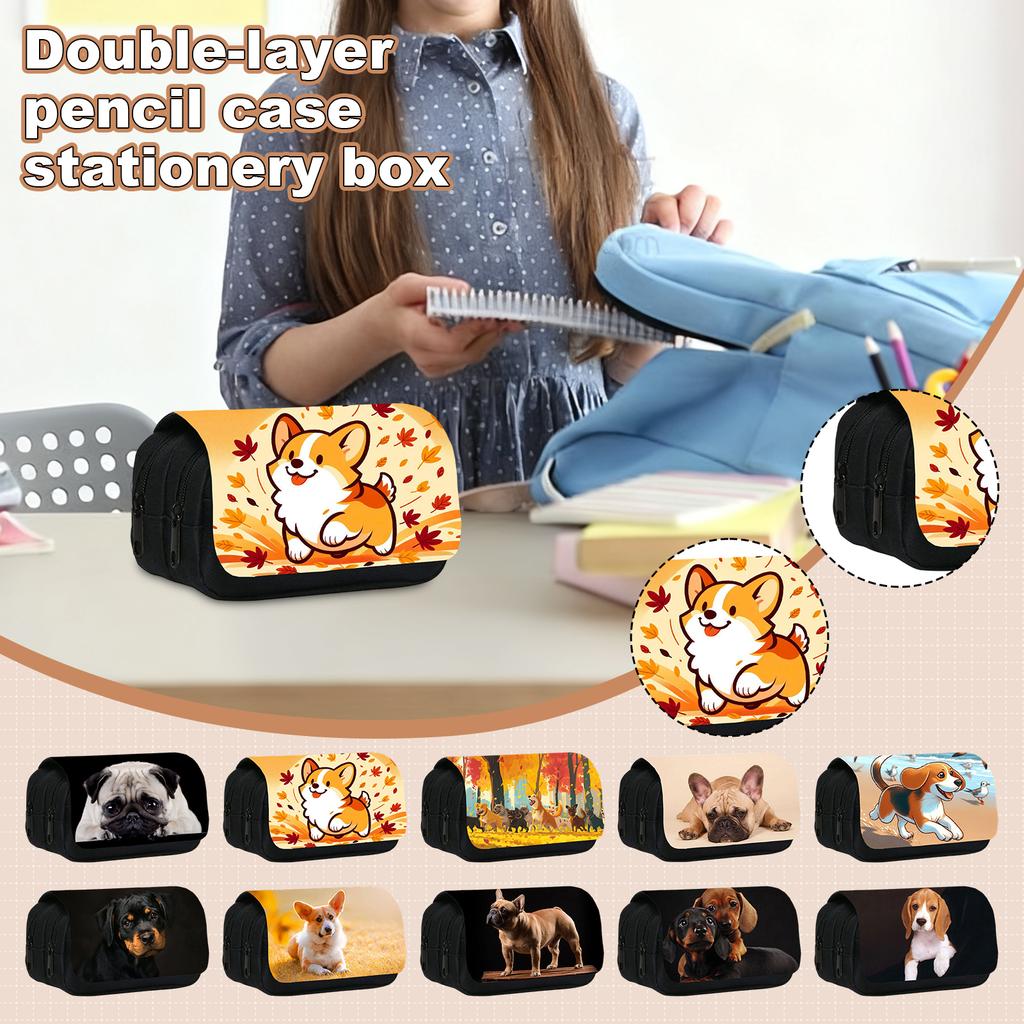 Милый пенал с принтом щенков, двухслойный, для учеников средней школы и детей