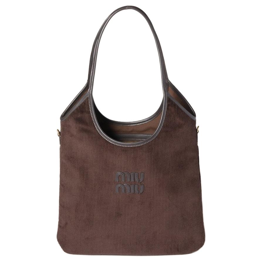 Miu Miu Ivy Brand Logo Design Fabric Tote Shoulder Bag Women bags Ebony 5BG231_AF81_F0192_V_MLN — купить товар онлайн с бесплатной доставкой по всему миру!