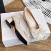 Весенняя Новая Обувь для Женщин Роскошные Туфли-лодочки Красивый Бант Туфли на Высоком Каблуке Женские Жемчужная Цепочка Туфли для Платья