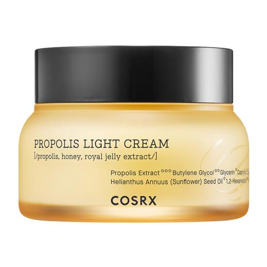 The COSRX Full Fit Propolis Light Cream is a nourishing yet lightweight moisturizer formulated with a high concentration of propolis extract to deliver deep hydration, glow, and skin-soothing care. Its smooth, non-greasy texture absorbs quickly to help strengthen the skin barrier, improve elasticity, and enhance overall radiance. Ideal for daily use, this cream is suitable for all skin types, especially dull, dry, or sensitive skin.