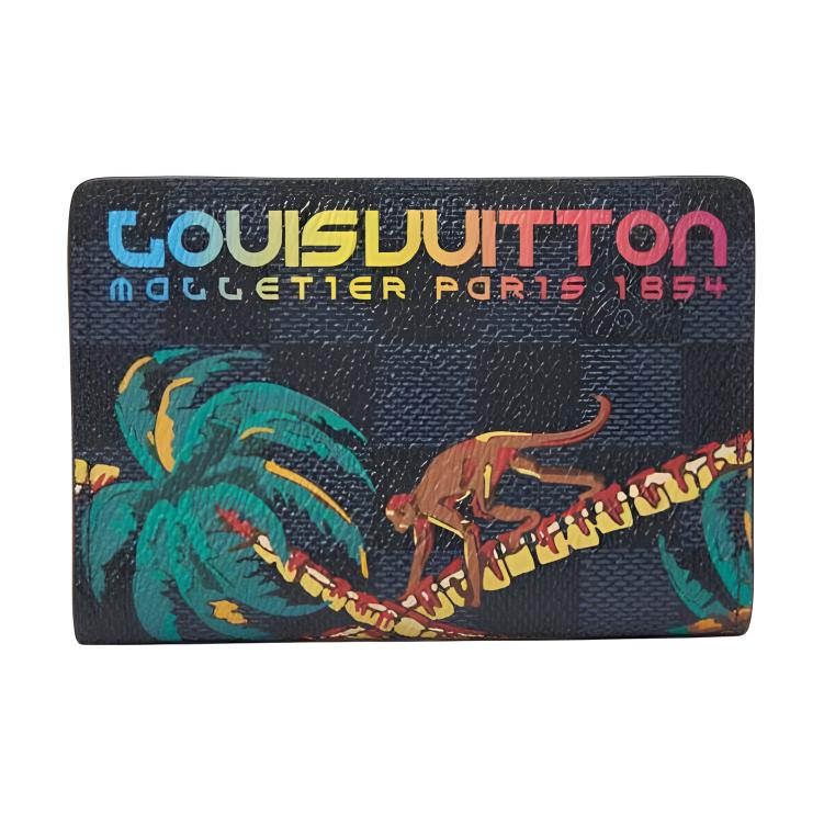 Louis Vuitton Graffiti Pattern Checkered Double Fold Design Coated Canvas Wallet Unisex Wallet Black M63508 — купить товар онлайн с бесплатной доставкой по всему миру!
