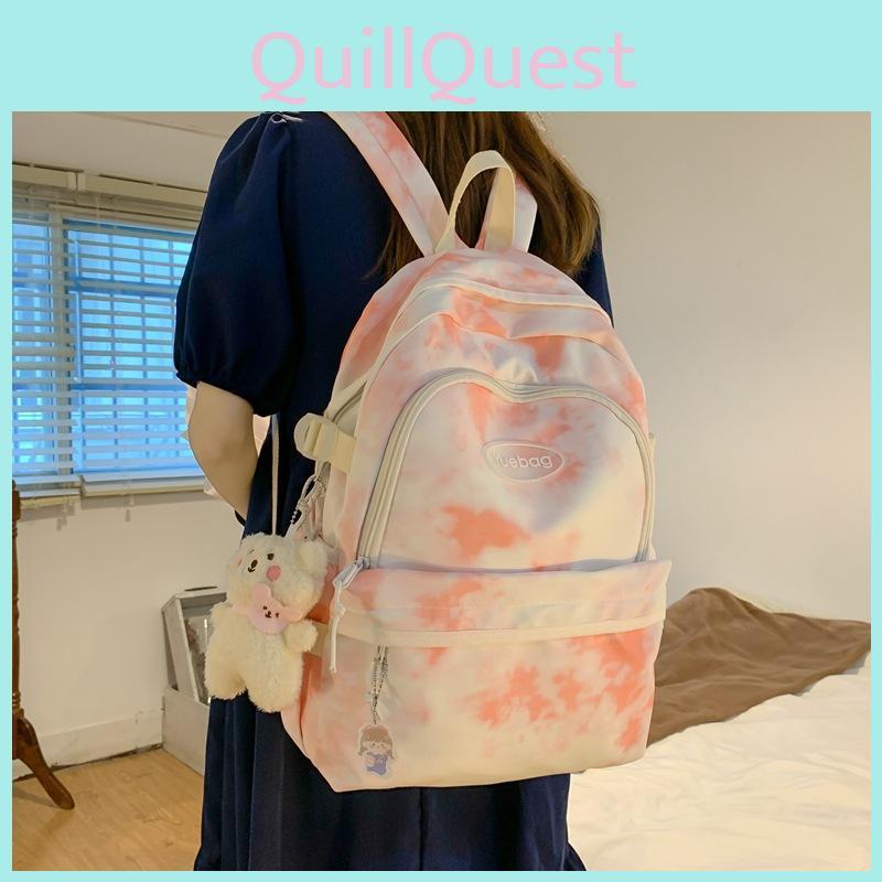 Fashionable Letter Decoration Tie Dye Pattern Student Casual Backpack For Campus Daily Use — купить товар онлайн с бесплатной доставкой до всему миру!