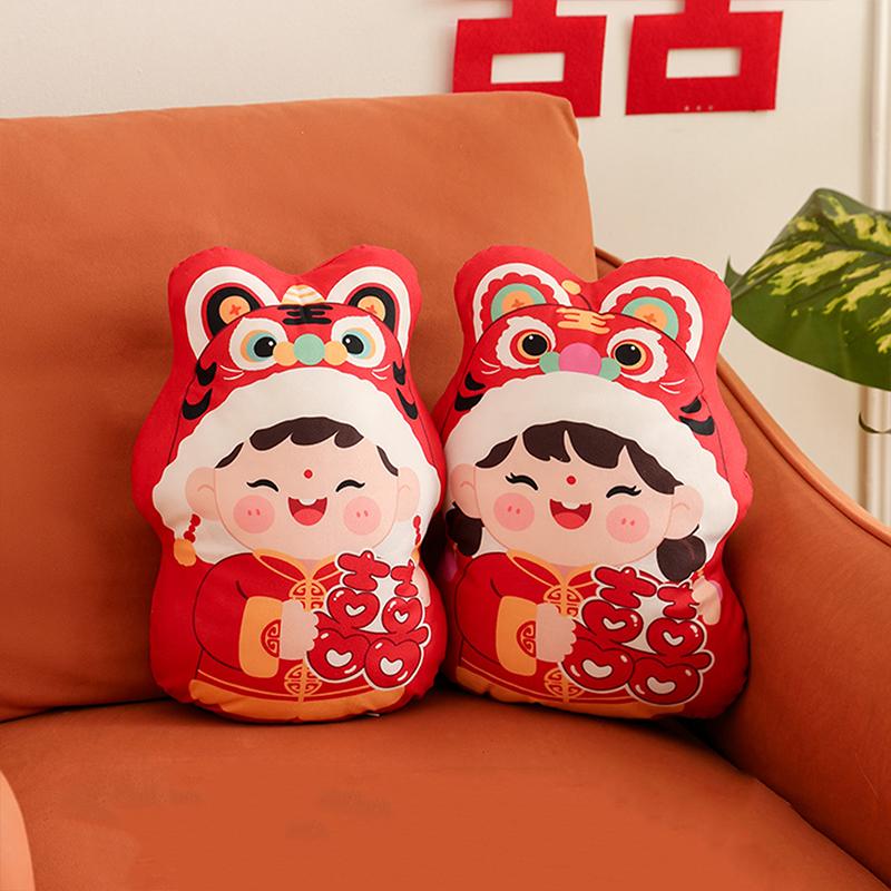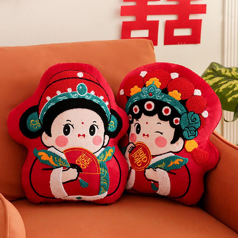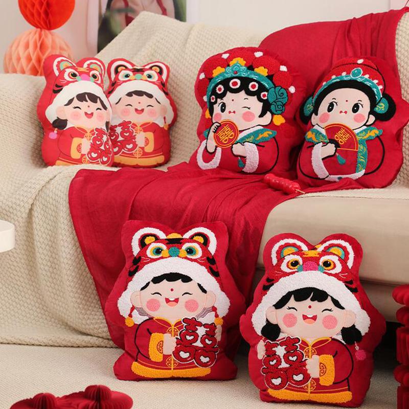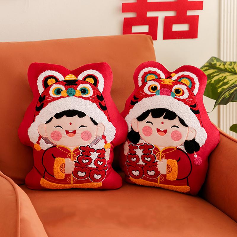 Китайская красная вышитая декоративная подушка Китайская традиционная свадебная декоративная подушка Новый год Помолвка Свадебная комната Оформление