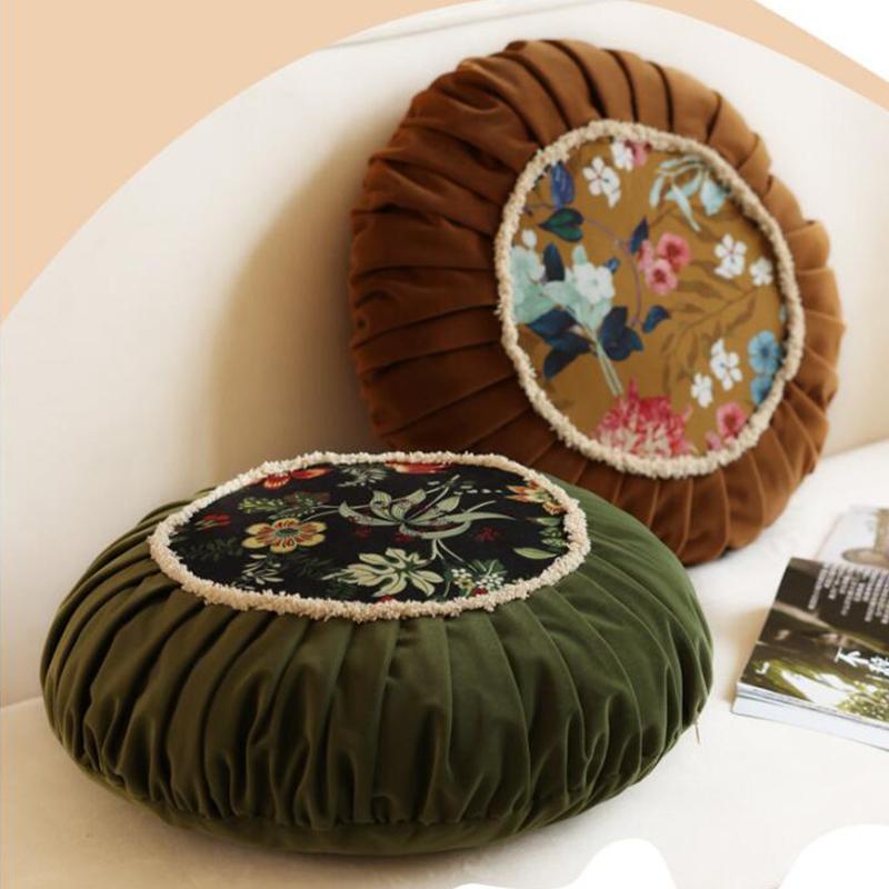Скандинавский Стиль Декоративная Подушка на Пояс Ретро Роскошная Подушка для Дивана и Прикроватной Тумбочки Креативная Плиссированная Круглая Высококачественная Бархатная Подушка Пуфик — купить товар онлайн с бесплатной доставкой по всему миру!