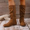 Женские осенне-зимние новые замшевые ботфорты с плиссировкой Большого размера 36-43 Боковая молния Винтажные с круглым носком До колена Длинные ботинки Низкий каблук Розовый — купить товар онлайн с бесплатной доставкой по всему миру!