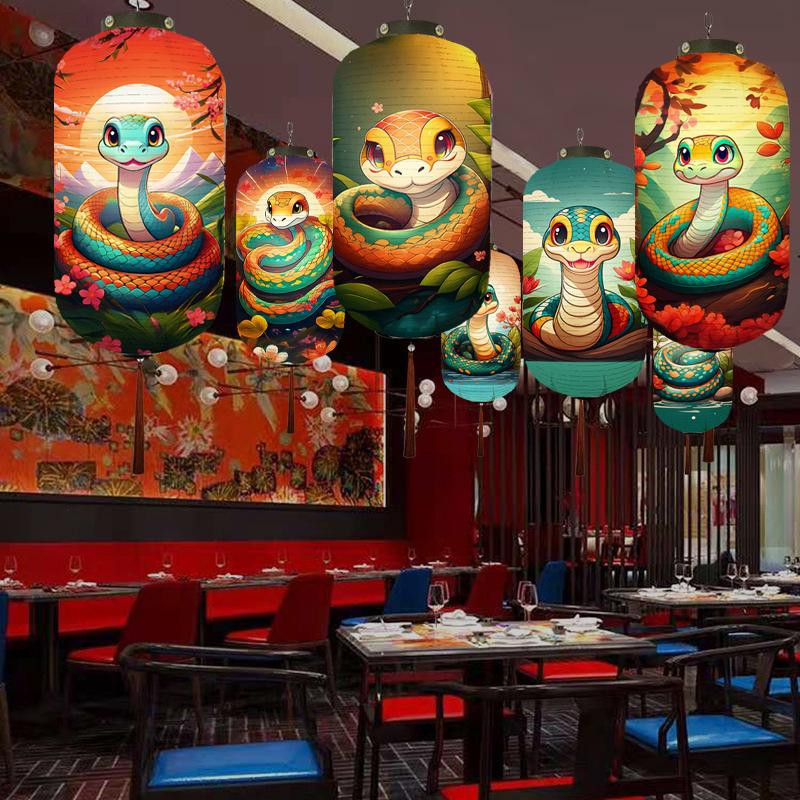 Японский Стиль Тканевый Фонарь Маскоты Новогоднего Фестиваля Зодиакальная Змея Принт Фонарь Магазин Суши Бистро Ресторан Декор Украшения