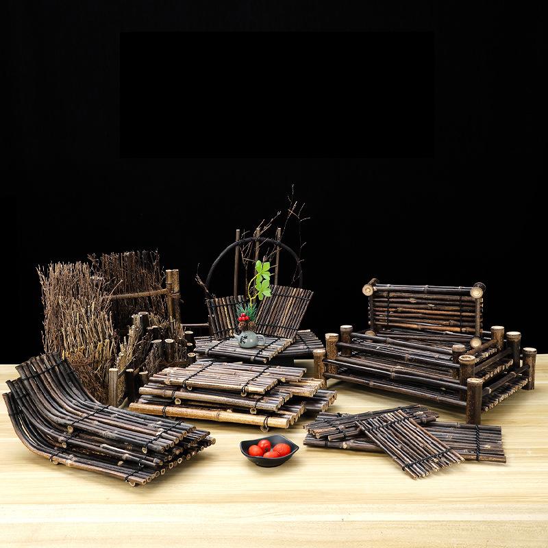 Винтажная бамбуковая тарелка для суши, бамбуковая тарелка-ограда, японская корейская кухня, сашими, суши-лодки, креативная сервировочная тарелка
