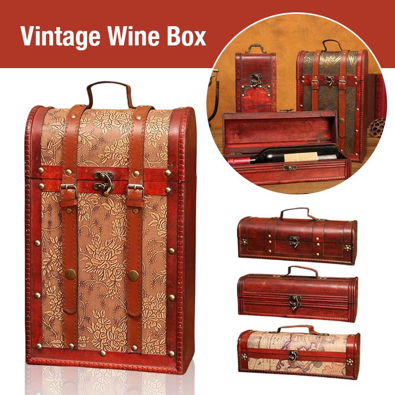 Vintage Archaistic Single/ Double Red Wine Box Portable Wood Wine Box Retro Gift Wine Storage Box Case Bottle Packag With Handle