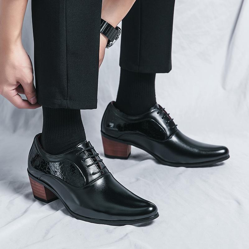 Новые мужские оксфорды на шнуровке 2026 Кожаные туфли на высоком каблуке Мужская обувь для клуба Классические туфли с острым носом Мужская повседневная обувь Новое поступление Мужская обувь