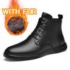 Autumn Winter Men Motorcycle Boots Versatile Round-toe Casual Ankle Boots Genuine Leather High Top Shoes Winter Plush Snow Botas